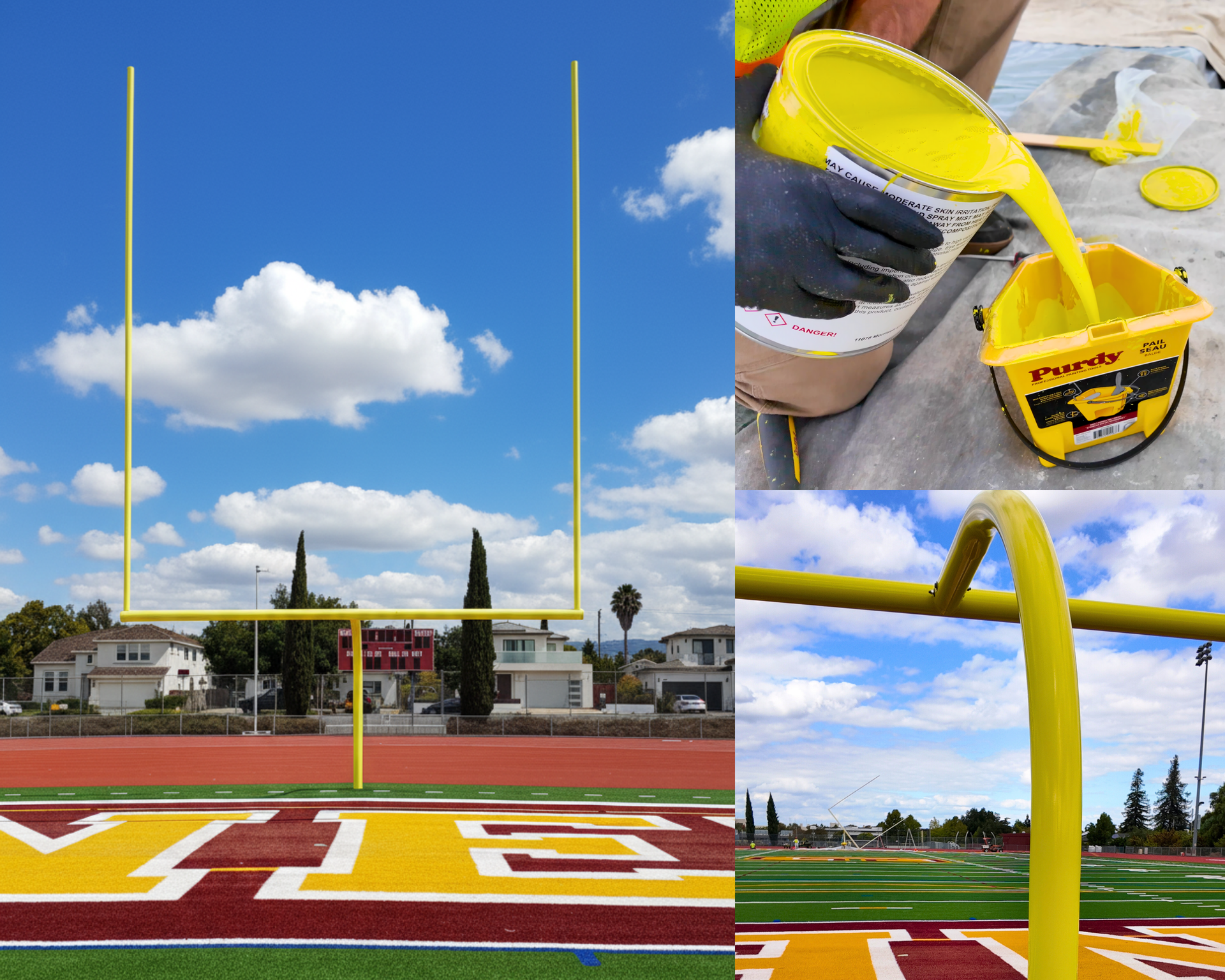 The transformation was remarkable. The Cupertino High School football goal posts were restored to their original, vibrant shine, looking absolutely "game-ready" just in time for kickoff.